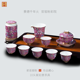 千年官窑粉彩,10头茶具,繁花盛放于紫金底色,瓷质温润如玉。手绘缠枝牡丹,矾红描金,华贵典雅。成套礼器,宜宴宜藏,用东方雅器点亮餐桌茶席,传世匠心,珍品藏心。