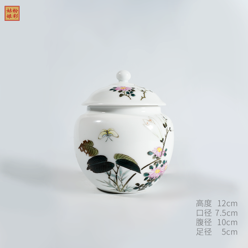 徐墉粉彩《临风玉一簪》茶叶罐