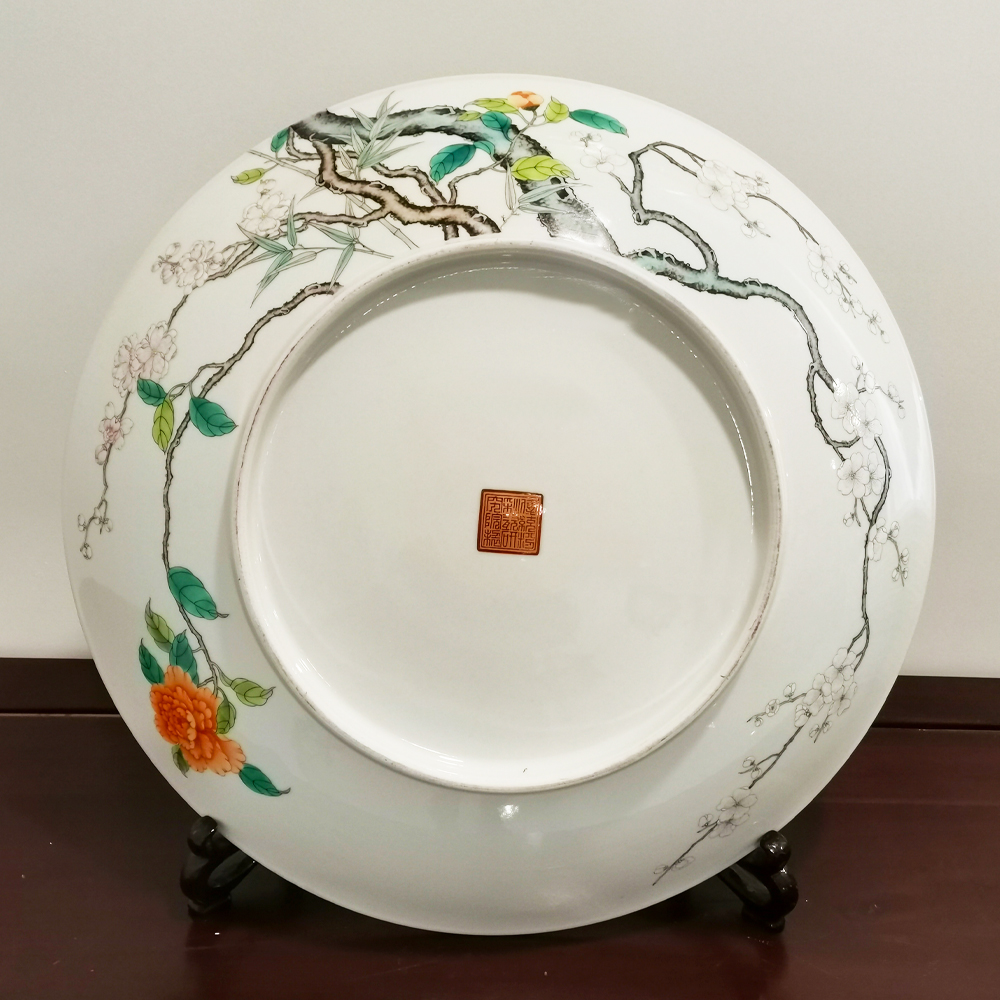 研究院复烧粉彩过枝花卉纹大盘细节图