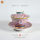 宫粉地缠枝莲盖碗 景德镇高档手工手绘茶事文...