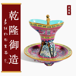 紫地轧道珐琅彩爵盘 景德镇手工手绘高端精...