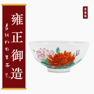 粉彩过枝花卉纹碗 景德镇手工手绘高端精品...