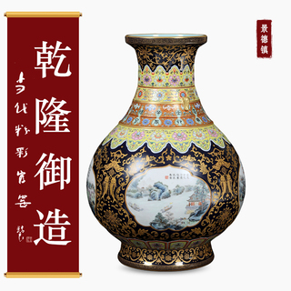 粉彩山水描金双耳瓶 景德镇重工手绘高端精...