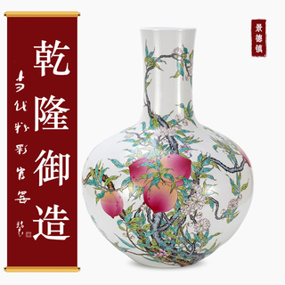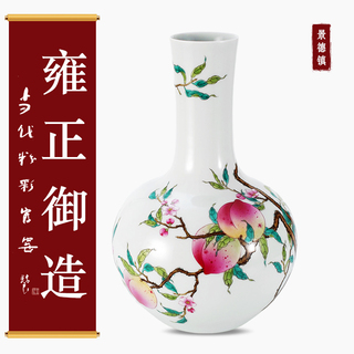 粉彩九桃纹天球瓶 景德镇手工手绘高端精品瓷...