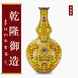 黄地洋彩万寿连年图长颈葫芦瓶 景德镇手工...
