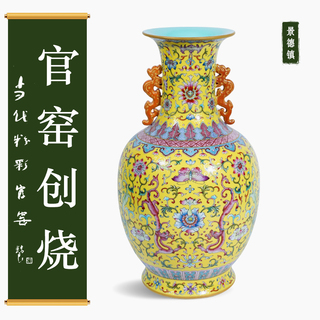 粉彩五蝠团庆纹蝠耳瓶 景德镇重工手绘高端...