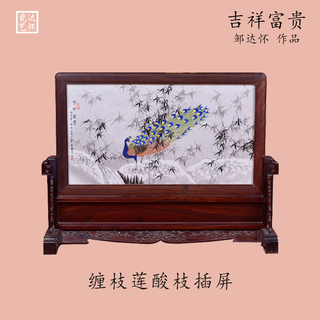 邹达怀《吉祥富贵》缠枝莲酸枝插屏 陶瓷...