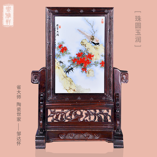 邹达怀《珠圆玉润》红檀插屏 陶瓷美术家...