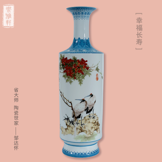 邹达怀《幸福长寿》翠边瓷瓶 陶瓷美术家...