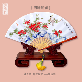 邹达怀《明珠朗润》扇形瓷板 陶瓷美术家...