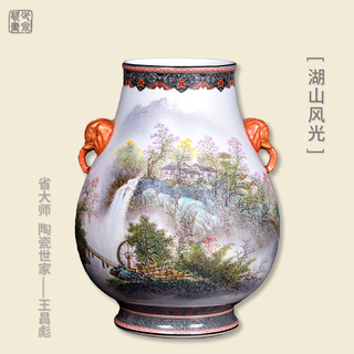 王昌彪《湖山风光》象耳尊 景德镇陶瓷美术...